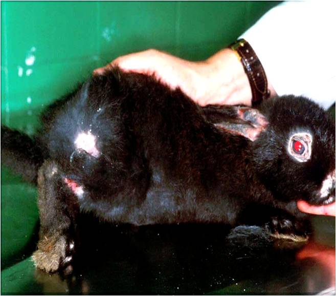 Se presenta en la consulta de dermatología un conejo de pelo largo, macho, de cuatro meses de edad. Los propietarios lo compraron hace quince días en una tienda de animales. Al principio notaron que le faltaba algo de pelo en las orejas y tenía caspa en el lomo pero no le dieron mucha importancia. Sin embargo, han observado que la alopecia se ha ido extendiendo conforme pasan los días y que el conejo no para de rascarse. Duerme en su jaula, donde pasa la mayor parte del día, aunque a veces lo sacan para que pasee un poco por la casa. Come heno y vegetales frescos. Todavía no lo han llevado al veterinario para desparasitarlo y vacunarlo.