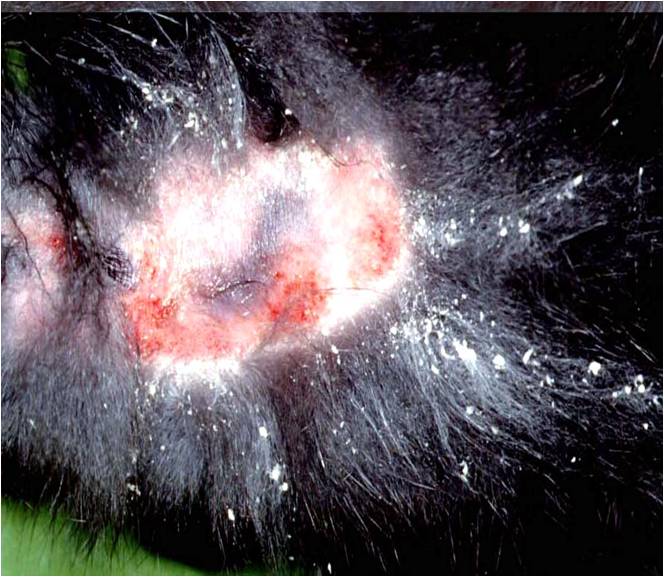 Alopecia multifocal muy pruriginosa que afecta a cabeza (área auricular, periocular y perilabial), zona dorsal del tronco y parte distal de las cuatro extremidades (Figura 1).