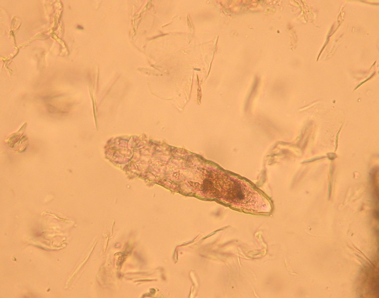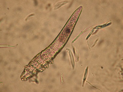 El diagnóstico definitivo es Demodicosis. Existen varios tipos de Demodicosis (ver capítulo de Demodicosis): localizada de cachorros, generalizada de perros jóvenes y generalizada de perros adultos y viejos. En este caso podríamos plantearnos la disyuntiva de si estamos ante una demodicosis localizada o una forma generalizada de perros jóvenes. Para determinar el tipo nos fijamos en el número de zonas que está afectadas con más de 4 o 5 Demodex por campo contados con el objetivo de 4 aumentos, Si hay más de 4 zonas afectadas o una región corporal entera, se considera una forma generalizada. En este caso se han encontrado distintas formas de Demodex en número superior a cinco en seis de las diez zonas en las que se hicieron raspados.